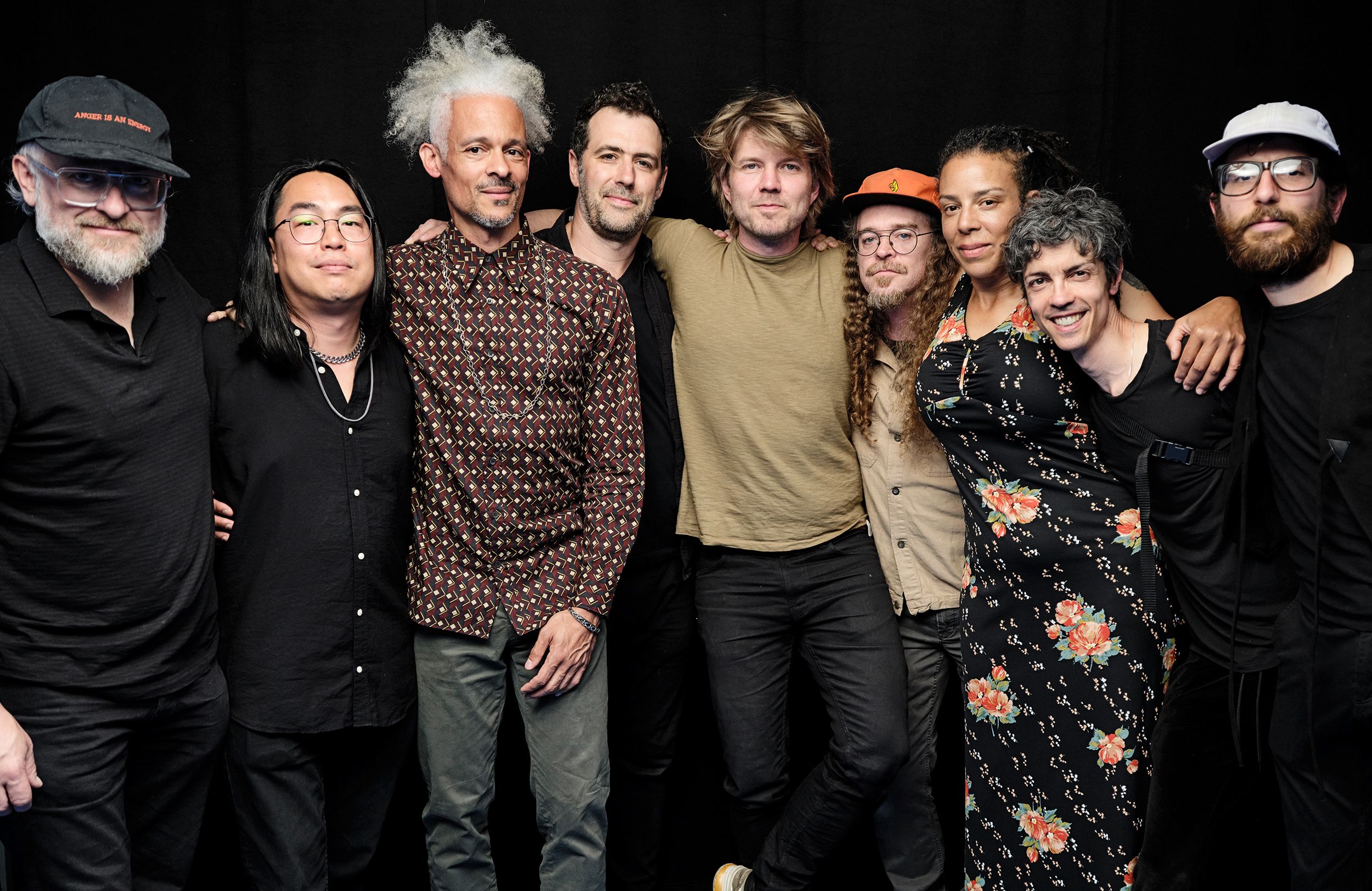 Contributors, L-R: Jesse Zubot, Kevin Yuen Kit Lo, Kaie Kellough, Jason Sharp, Joe Grass, Josh Zubot, Tawhida Tanya Evanson, Stefan Schneider, Tommy Crane